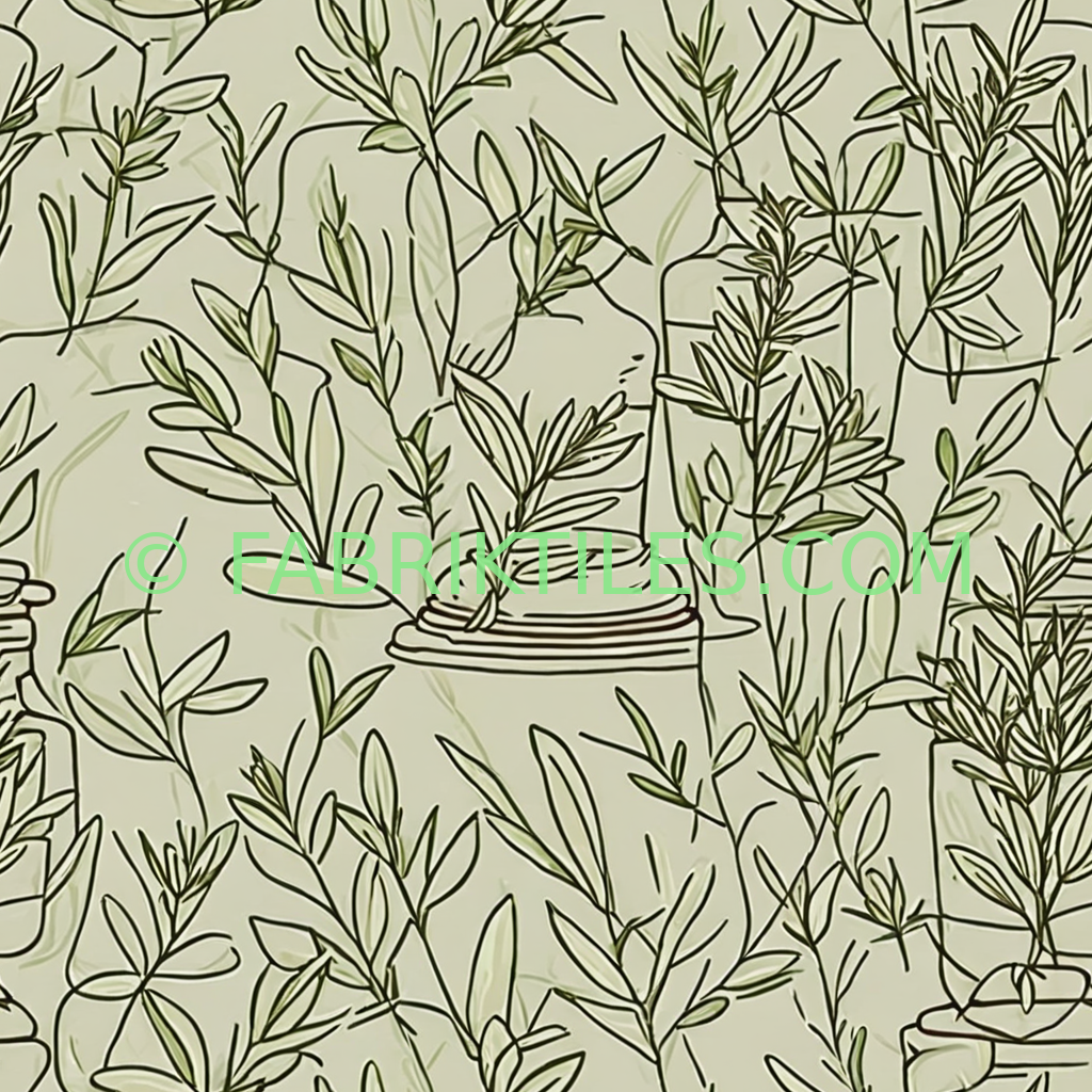 Delicate olive branches and sprigs in varying shades of green are sketched across a soft sage background, creating a serene and natural botanical pattern.